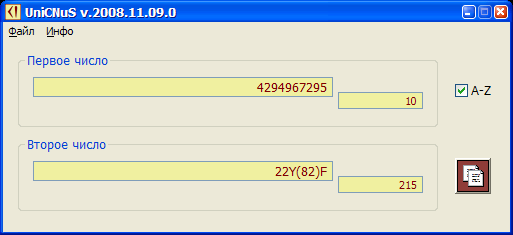 UniCNuS конвертирует в реальном времени любое целое число из множества $\{0, \ldots , 2^{32}-1\}$ записано в системе счисления с основанием $b \in \{2, \ldots , 2^{32}-1\}$ в соответствующее представление в $b'$-ричной системе счисления $b' \in \{2, \ldots , 2^{32}-1\}$.